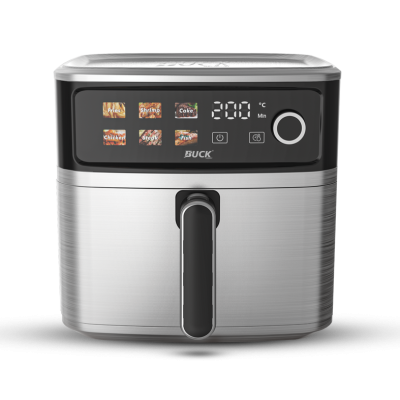 سرخکن بدون روغن باک مدل BK1020 با ظرفیت 9.4 لیتر، توان 2200 وات، بدنه استیل ضدزنگ و نمایشگر لمسی دیجیتال.