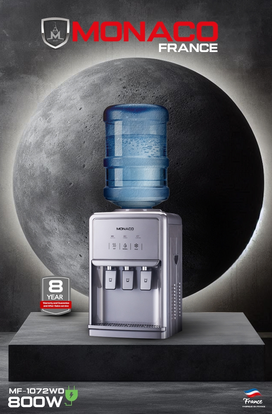 آبسردکن موناکو مدل 1074 فرانسه با موتور تماممسی 850 وات، طراحی سیلور مدرن، مخزن استیل ضدزنگ و قابلیت تأمین آب سرد، گرم و ولرم، آبسردکن رومیزی موناکو مدل 1072فرانسه monacoانتخابی مناسب برای خانه و محل کار شماست.