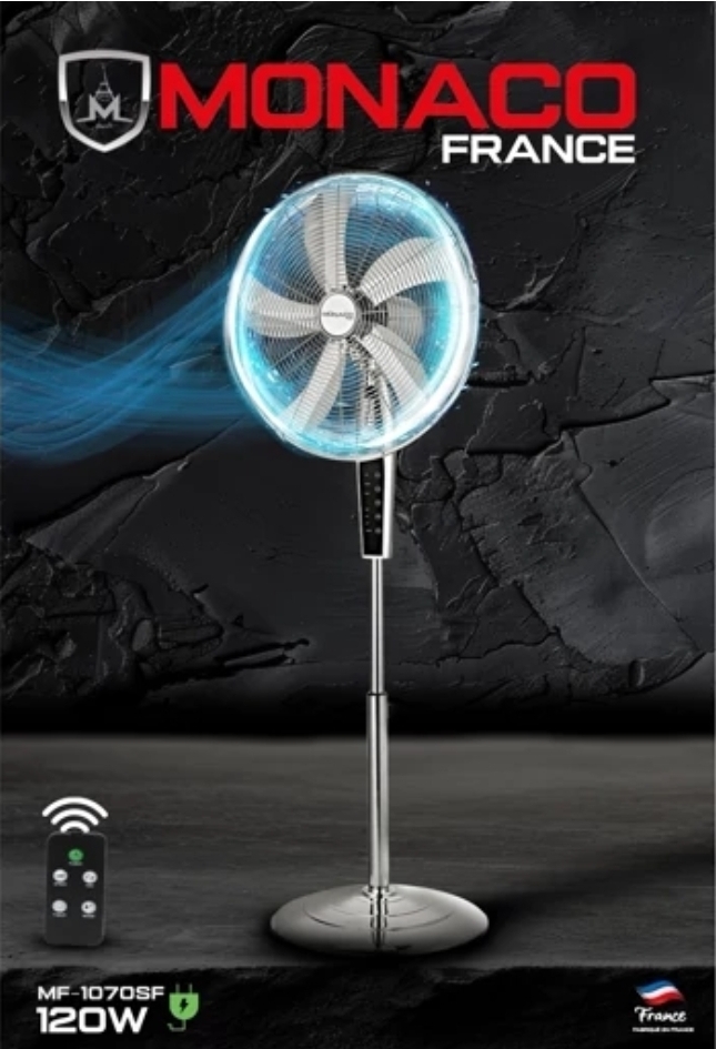 پنکه موناکو مدل 1070 فرانسه با توان 120 وات، طراحی تلسکوپی مدرن، ریموت کنترل، تنظیم خودکار سرعت باد و مصرف انرژی بهینه، بهترین انتخابپنکه موناکو مدل 1070فرانسه monaco برای خنکسازی خانه و محل کار در فصلهای گرم سال است.